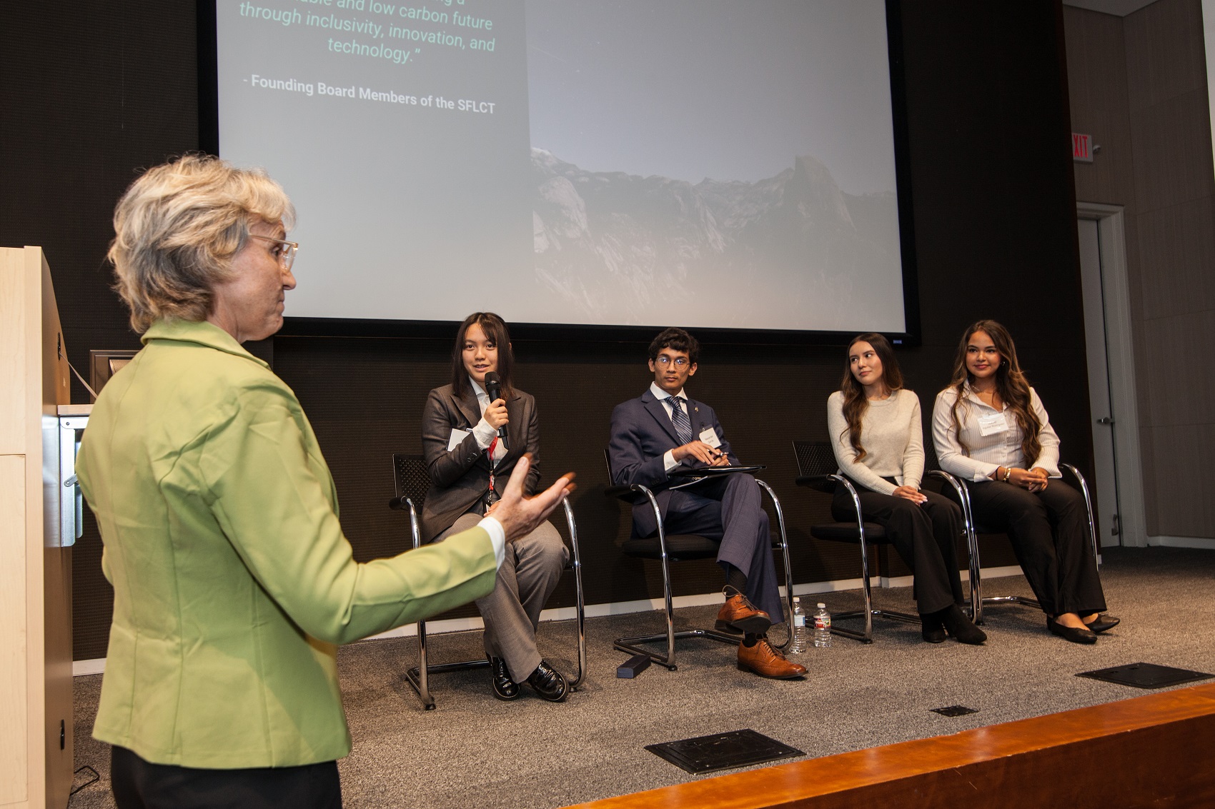 The student panel complemented the industry panel, demonstrating SFLCT’s Immersion-to-Impact model by cultivating learners from observers to active interpreters of the systems they encounter. Moderated by Dr. Sarah Morgan, Professor of Biology and Environmental Science at Lone Star College–CyFair and a member of SFLCT’s advisory board, students from Rice University and Lone Star College–CyFair articulated how AI might shape their careers, influence inclusion in the energy transition, and define pathways for impact.